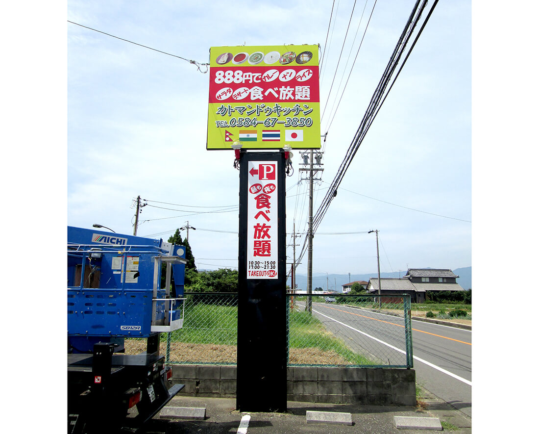 店の正面だけでなく、少し離れた場所からでも存在感を発揮するため、車で移動する人へのアピールにも適しています。
